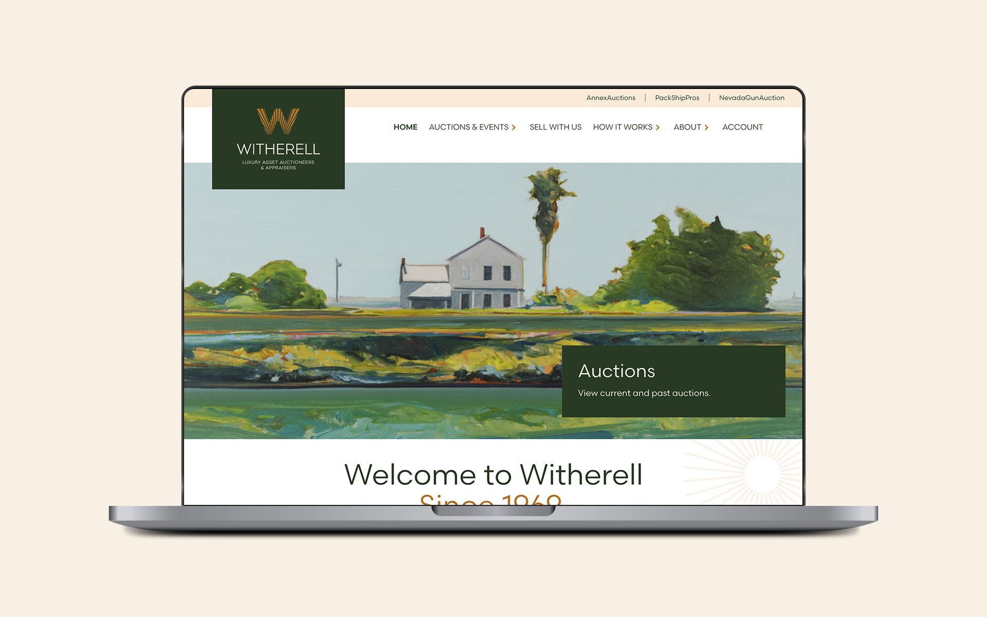 Witherell Luxury Asset Auctioneers & Appraisers was in need of a logo and brand refresh, as well as an updated website. The various W’s I designed represent the categories and services that Witherell handles, from jewelry to antique firearms, fine art and luxury watches to native and western Americana. This logo won a silver Addy Award in Sacramento, CA.